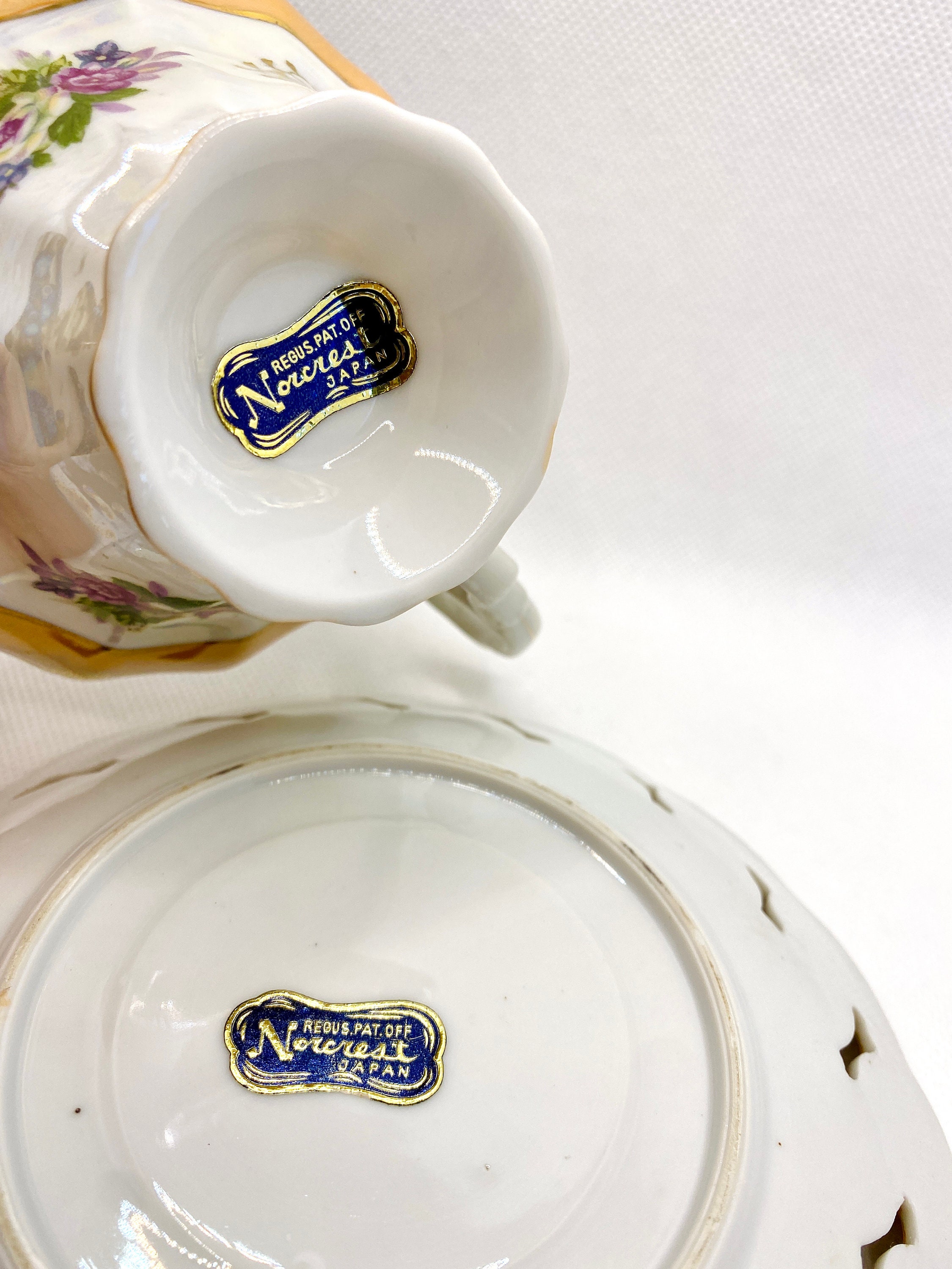 Free Shipping! This is a wonderful condition highly ornate vintage Norcrest gold and floral teacup and saucer. The teacup has gold and floral with a luster finish. The saucer has decorative openings around the edge. They are in excellent condition with very little use. There are no breaks, cracks, scratching, or crazing in the cup or saucer. Based on the back stamp it was made in approx the 1950s. Both pieces have high-pitched ping. This is a great gift for any vintage teacup collector. It’s also a wonderful addition to your next zoom call or get-together to really class up your coffee, tea, espresso, or any variety of cocktail.