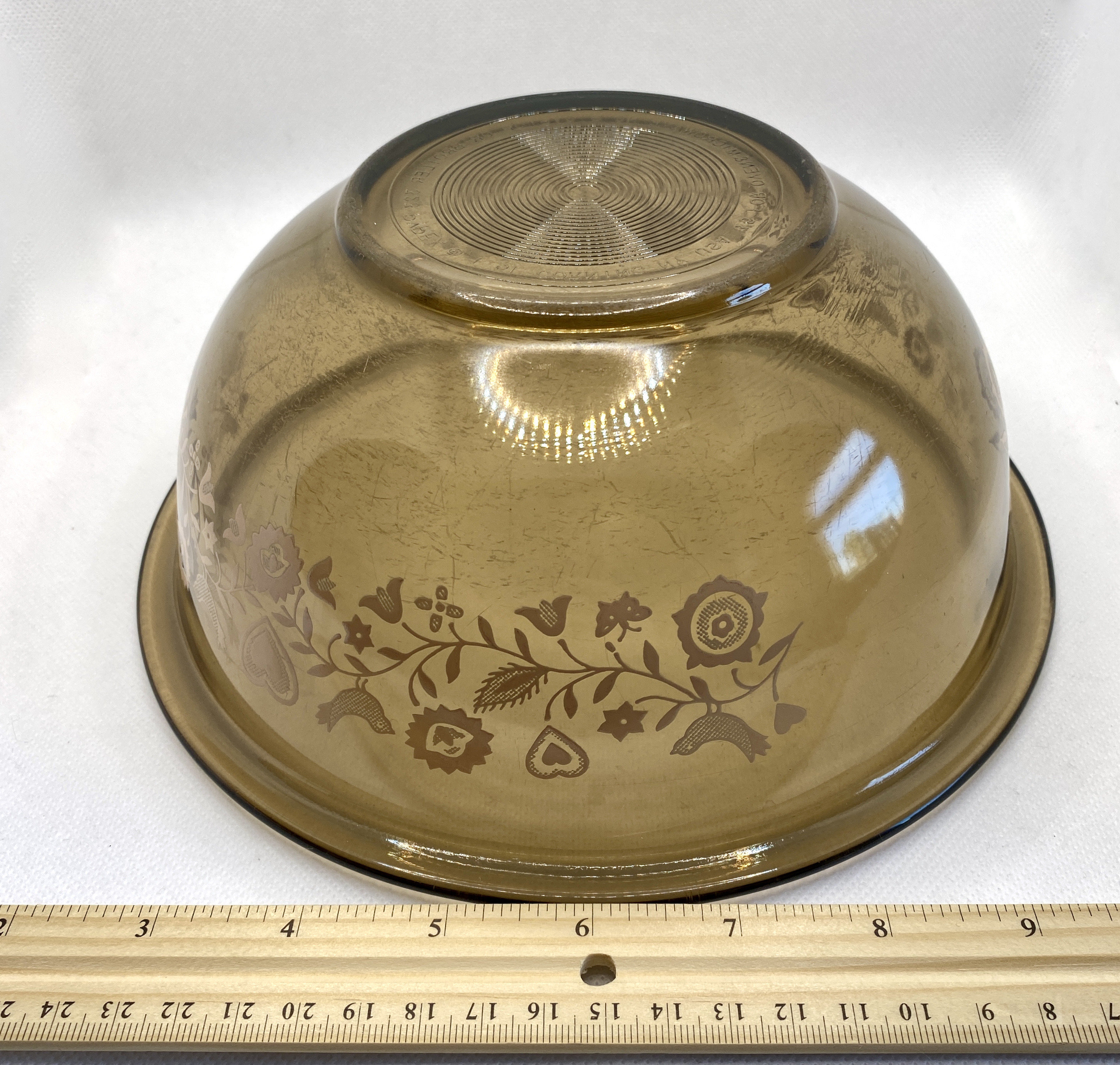 Free Shipping! This is a vintage set of Pyrex Festive Harvest patterned nesting bowls. All 3 bowls have significant scratching on the inside. It looks like a lot of years of an electric hand mixer was used with these bowls. The scratches are not sharp etc just long-term use over many years. The hearts and birds design is in wonderful shape on all the bowls. This is a great set of pyrex for display or everyday use.
